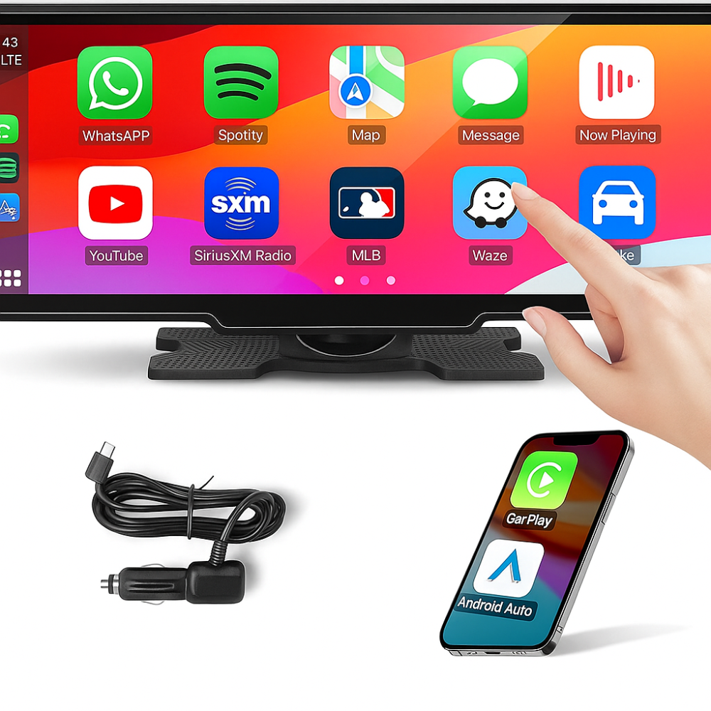 • 📱 دعم CarPlay و Android Auto: تحكم في تطبيقاتك مثل WhatsApp، Waze، Spotify، والخرائط مباشرة من الشاشة.