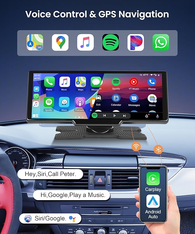 - 📱 دعم CarPlay و Android Auto: تحكم في تطبيقاتك مثل WhatsApp، Waze، Spotify، والخرائط مباشرة من الشاشة.