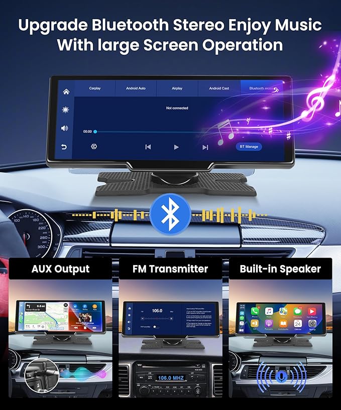 استمتع بتجربة قيادة أكثر أمانًا ومتعة مع هذه الشاشة الذكية المتطورة، بشاشة لمس عالية الدقة واتصال لاسلكي مع أجهزة iPhone وAndroid عبر Apple CarPlay وAndroid Auto، بالإضافة إلى دعم كامل لتطبيقات الترفيه الشهيرة.