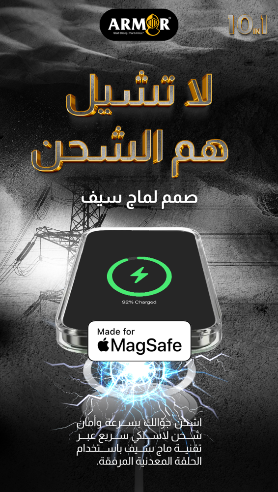 صمم لماج سيف: اشحن جوّالك بسرعة وأمان شحن لاسلكي سريع عبر تقنية ماج سيف باستخدام الحلقة المعدنية المرفقة.